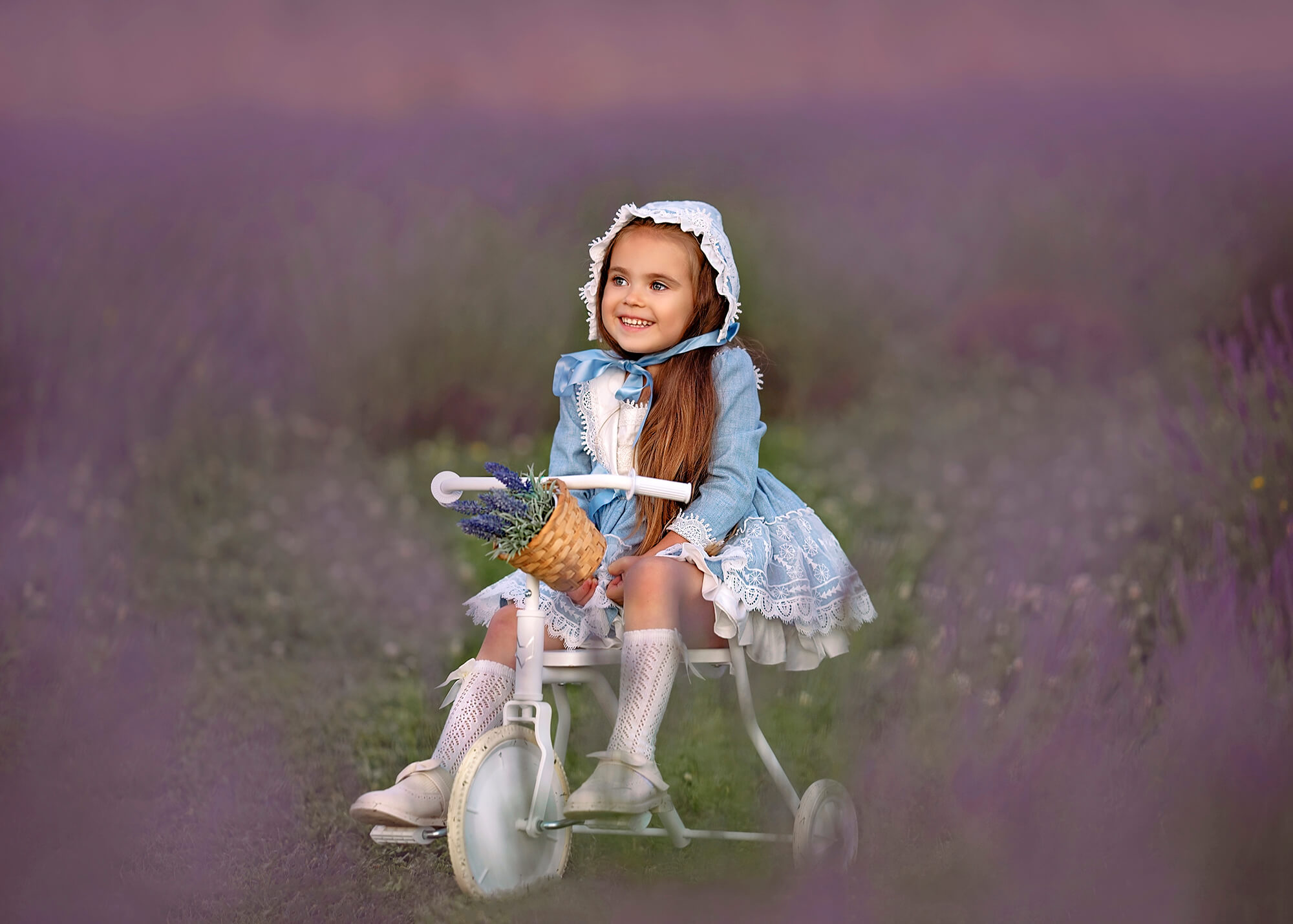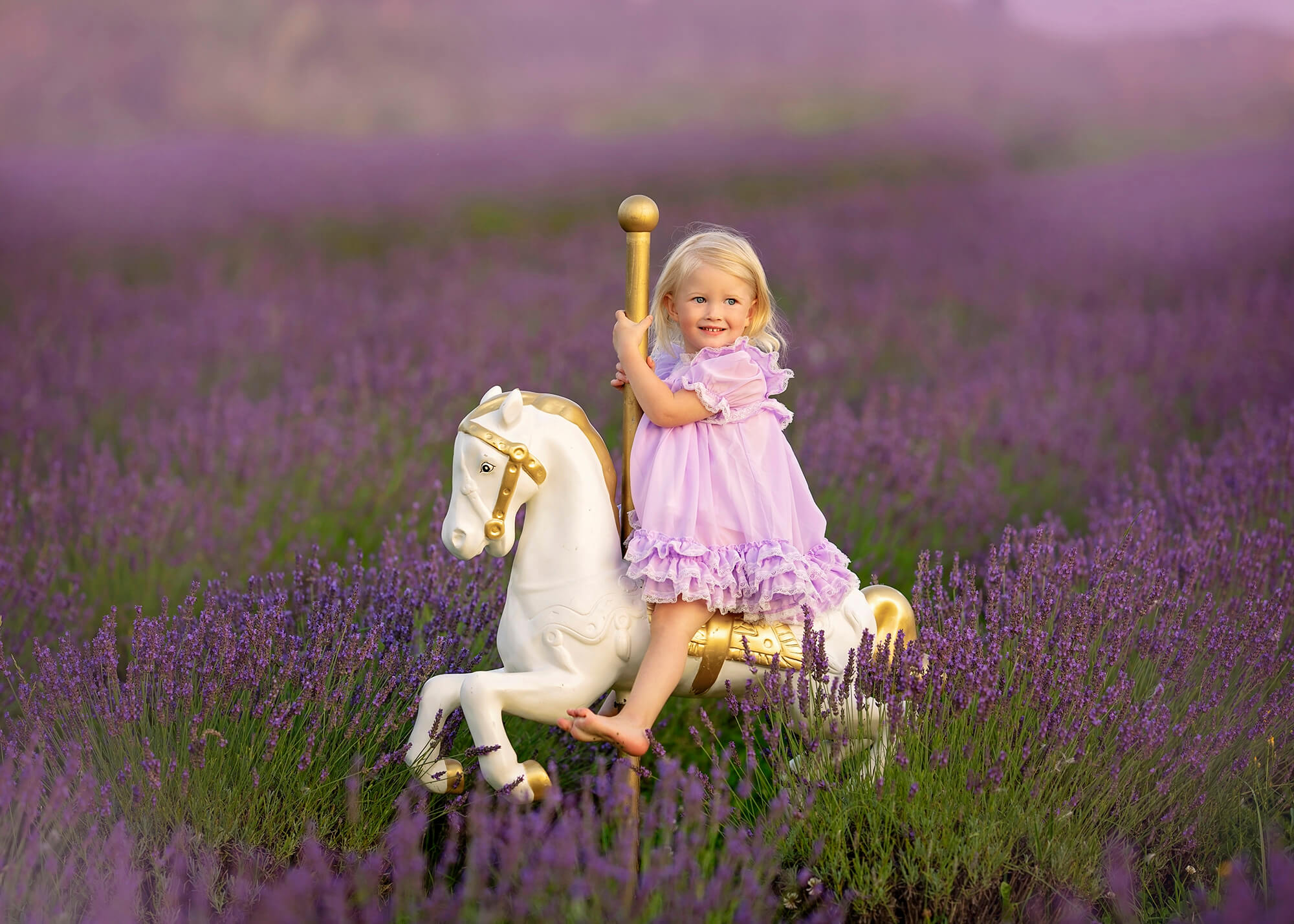 W moich sesjach w lawendzie stawiam na różnorodność i kreatywność. Przygotowuję szereg akcesoriów, które sprawiają, że każde zdjęcie nabiera wyjątkowego charakteru. W mojej kolekcji znajdziecie m.in. stylowy konik z karuzeli, który doskonale wpisuje się w klimat dziecięcych marzeń, uroczy rowerek, drabinki idealne do zabawy, a także kosze wypełnione lawendą, które dodają romantycznego akcentu każdej sesji. Te elementy tworzą ciekawe kompozycje i sprawiają, że zdjęcia zyskują niepowtarzalny urok.